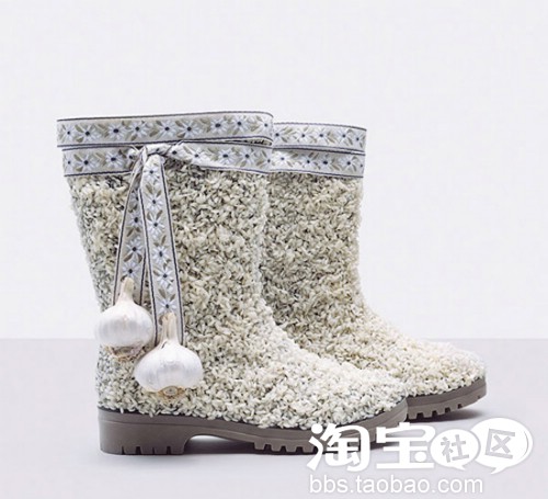 米饭做的鞋子,有点难以接受。吊坠是蒜头。
