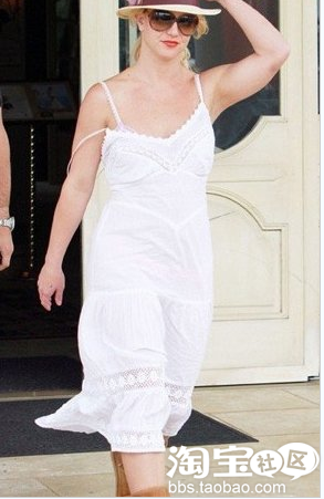 可是,这两位偏偏要穿白色的衣服,布兰妮的白色吊带裙就像睡衣!jessica simpson的白色蕾丝裙虽然外面加了件外套,但是依然难掩她臃肿的体型,失败!