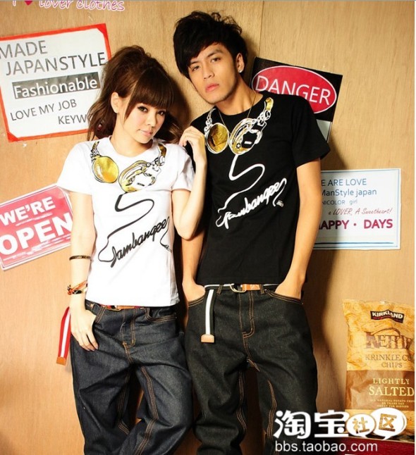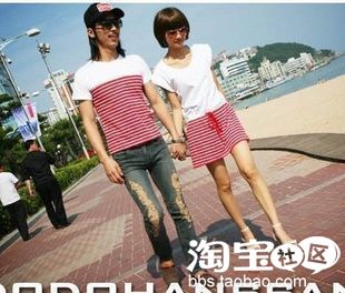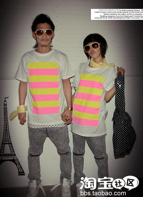 天气酷热 ,情侣们也要与众不同穿出自己的个性。