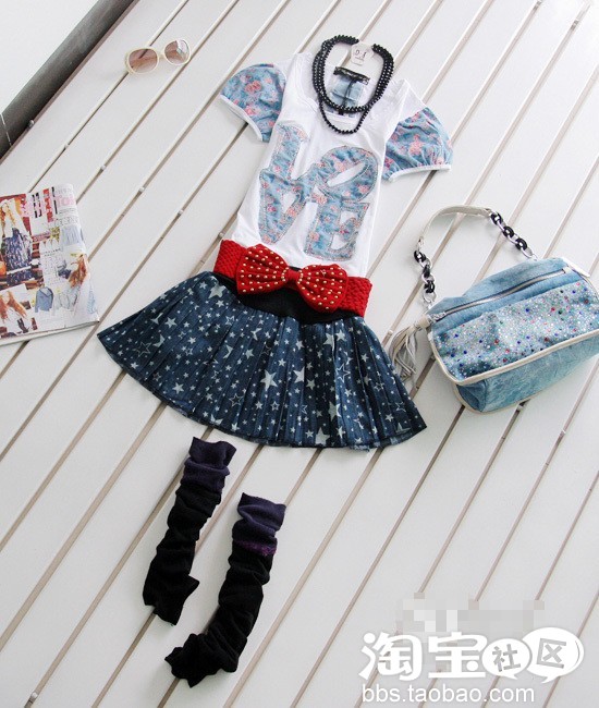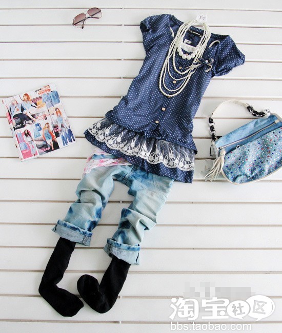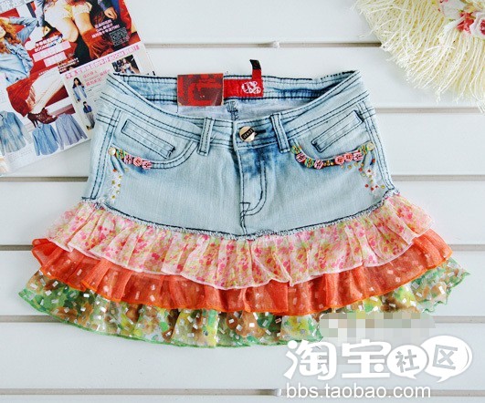 甜美靓丽的雪纺蛋糕裙,包身的牛仔面料设计,展现你性感的小翘臀