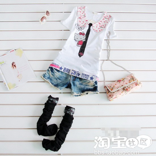 可爱的碎花娃娃领,精美的KITTY猫,充满了时尚的童真气