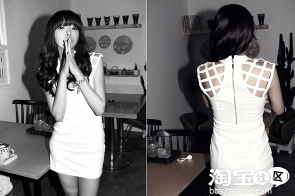 漏背拉链白色连衣裙,独特的设计款式,很吸引大家的注意力哦!