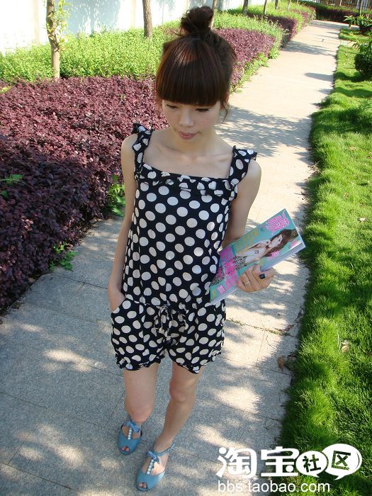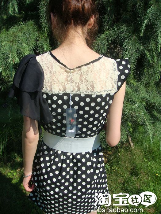 5. 黑白圆点连衣裙+宽腰带+黑色绸带