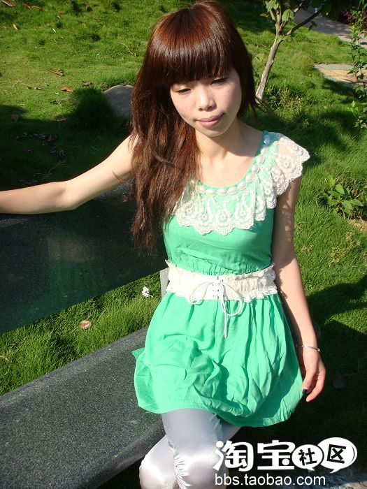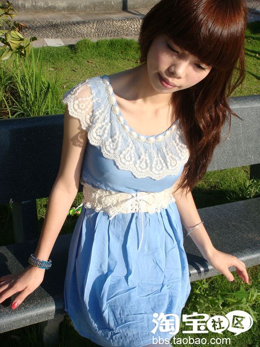 蕾丝的花肩 配上纯白的贝壳 再系上蕾丝的腰带