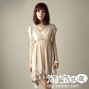 日系深蛋糕荷叶下摆雪纺连衣裙