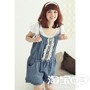 时尚可爱百搭吊带连体牛仔裤热裤短裤