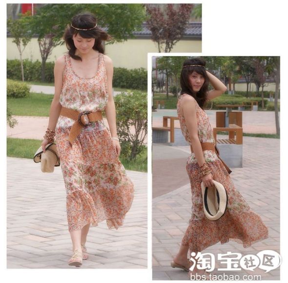 波西米亚长裙今年很流行哦,很多杂志,VIVI,昕薇上都有重点介绍呢,很喜欢这样的飘逸感觉。穿上它我们一起去海边吧。哇咔咔