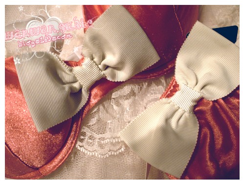 五层叠叠不休的飞袖 加上婴儿粉蓝色的小细格的知性 还有胸口上同一色的蝴蝶结 体现着细节的含蓄