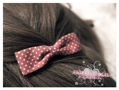 红色点点蝴蝶结是从迪斯尼里买的米奇发夹上摘下来粘上去滴 嘻嘻