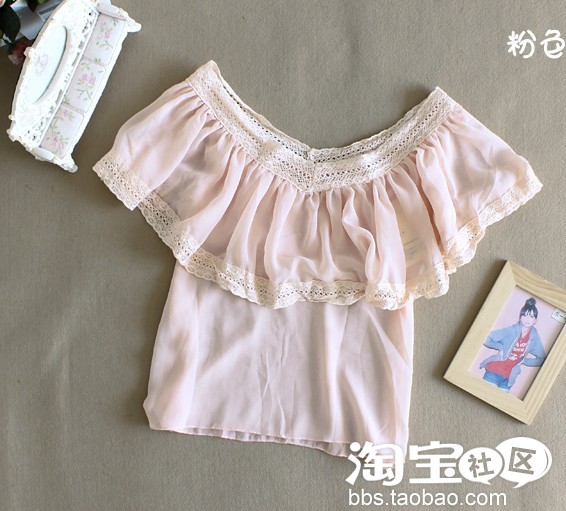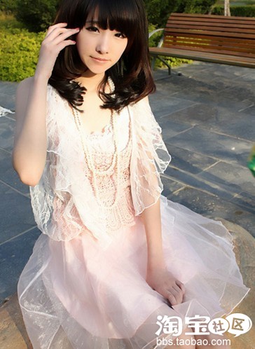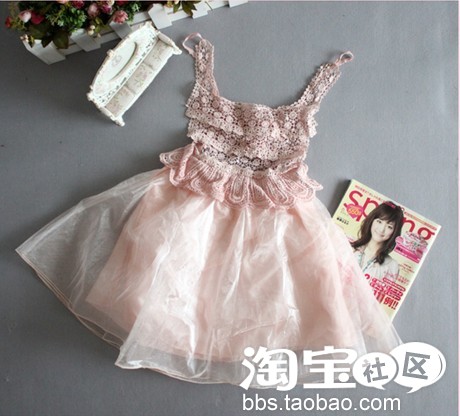 后背是只有两条蕾丝花边的吊带绳,上身没有内衬,要跟其他YY搭配着穿。