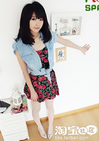 配上一条简单的牛仔迷你裙,俏皮又可爱,