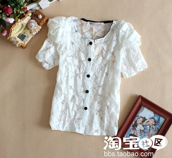 上身一层层的精密编织的棉质蕾丝镂空花边,细腻而精致,