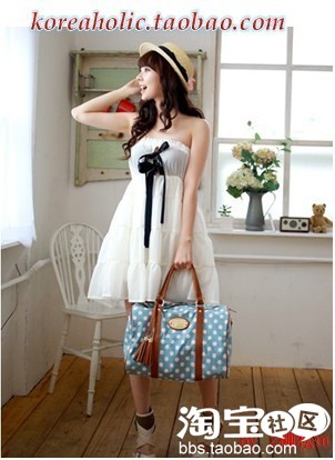 团购宝贝:美女夏日出行必备 旅行用 蓝色波点包