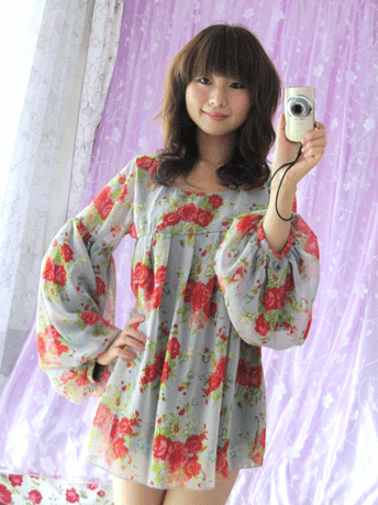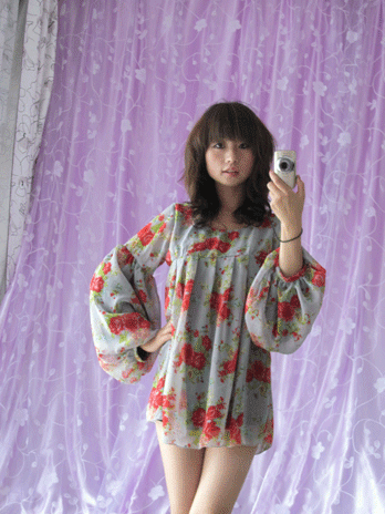 特别的设计,袖子是比较夸张的灯笼袖,穿上有女人味,比平时温柔了,(*^__^*) 嘻嘻