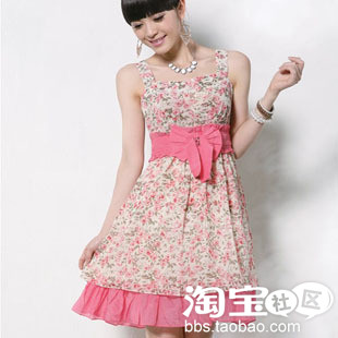 优雅的小碎花印花加上蝴蝶结的修身,雪纺的面料立刻让再强势的女人都会变成小女人哦,为你增加不少的桃花运,让他升起保护你的欲望。做一回小女人何尝不好呢?