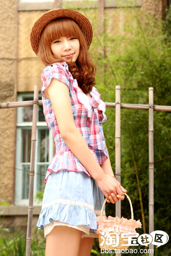 ② 百搭个性蝴蝶结格子衬衫+花边纯色裙裤=打造甜美学院公主