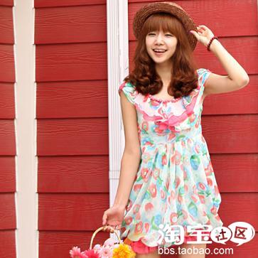 带有荷叶边设计的连衣裙给人一种甜美可爱的感觉,
