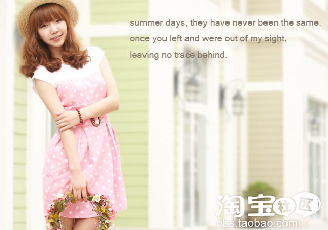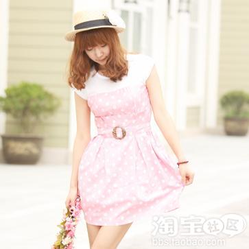 ⑤可爱大波点拼接连衣裙+蝴蝶结草编鸭舌帽=简约古典气质公主