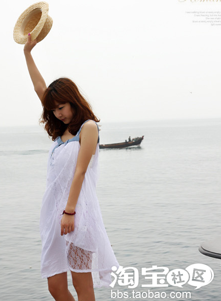 ⑥蕾丝牛仔吊带裙+沙滩凉拖+草编鸭舌猫=打造时尚宠儿