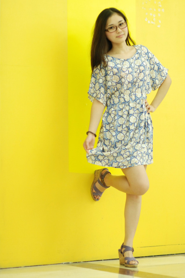 拍摄地点宜家,雪纺荷叶袖能很好的掩盖手臂的肉肉,面料很修身,
