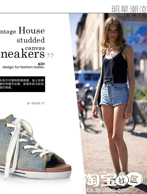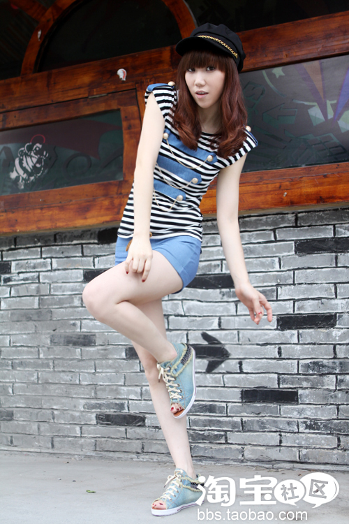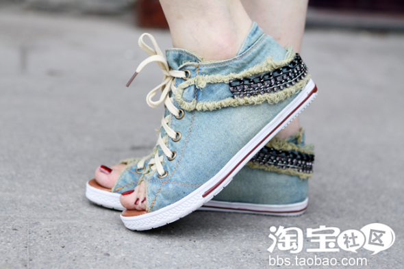 顺便说一下我脚上这双是最新款的鱼嘴牛仔布鞋