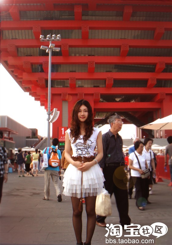 时下最流行的搭配之一,高腰蓬蓬裙配波西米亚腰带,可以达到收腰、拉长腿部的视觉效果哦,甜美中带着小性感,是小猫游世博时的穿着哦~