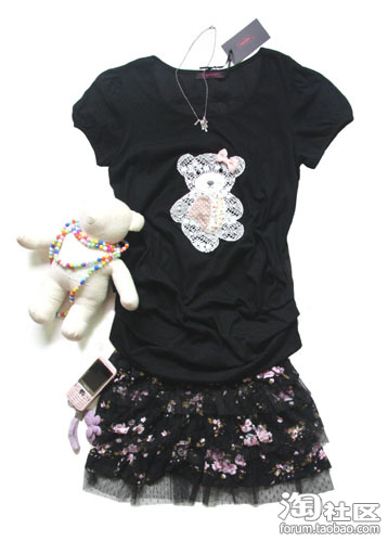 喜欢欧时力的亲们,一定会留意到她的 T恤的款式和细节设计! 蝴蝶结在T恤上的运用可为淋漓尽致.比如她的小熊图案T恤,除了 运用今年流行的花边贴布绣工艺外,还布 忘记在小熊的头上添加了一只立体的蝴蝶结。以下是我店中的两款相关蝴蝶结T恤!!
