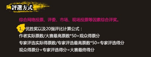 纪念奖评选标准:网络投票数,评委投票数,是否原创