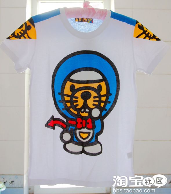 这次团购的是几款T恤,28元的是纯棉,30元是莱卡棉,上面有很多立体的设计,做工比较精细的