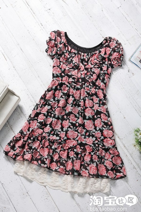 品名:SL8828热卖爆款最新甜美荷叶领蕾丝花边红玫瑰淑女裙 大码