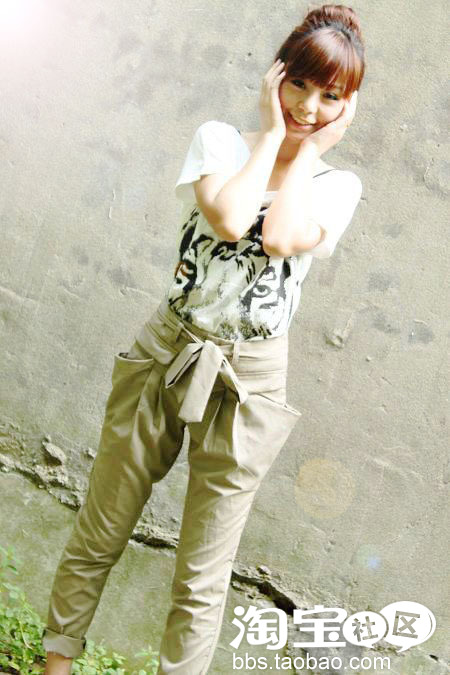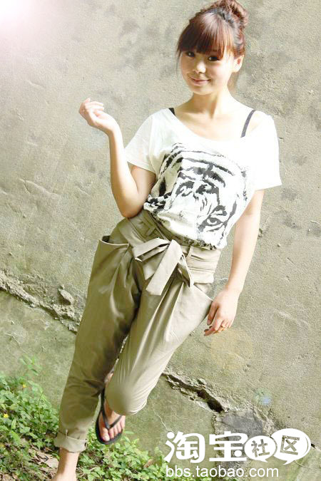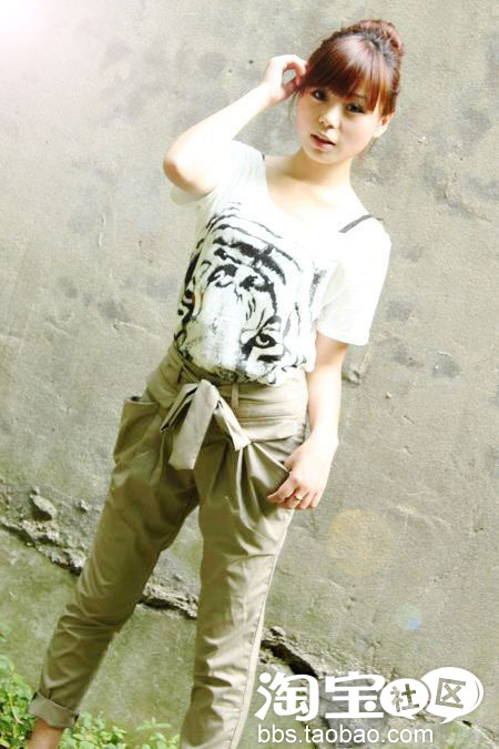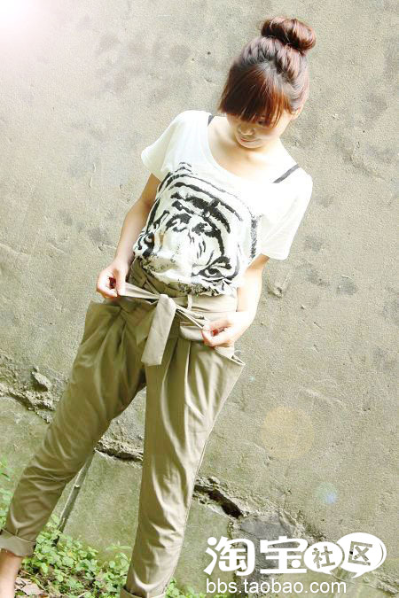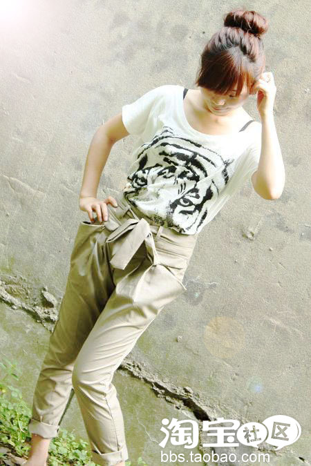 复古的欧美范萝卜裤子,搭配老虎T,我自己最爱的搭配,高跟鞋一定要哦~