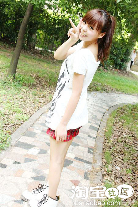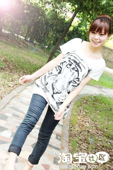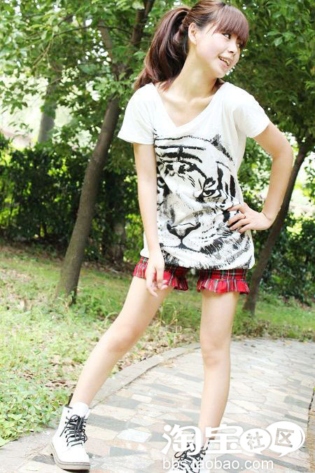 老虎T不甜美,但是搭配不一样的下装,和甜美的笑容,那就甜美了