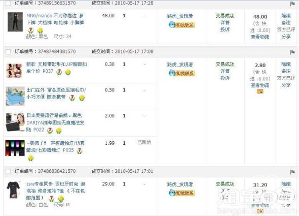 (中间三样是赠品,大家算下价格,两件不包邮。。。大家也可以淘一下,那件ZARA的29在淘宝算很便宜的啦~当时琪琪是冲这件去的,裤子是不小心看中的,就一起买了,哈哈~)
