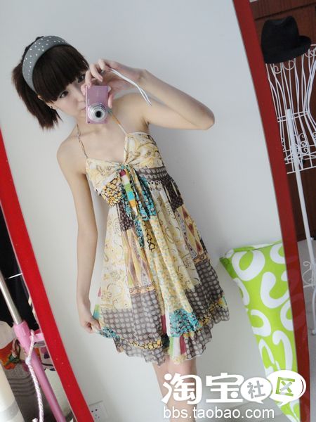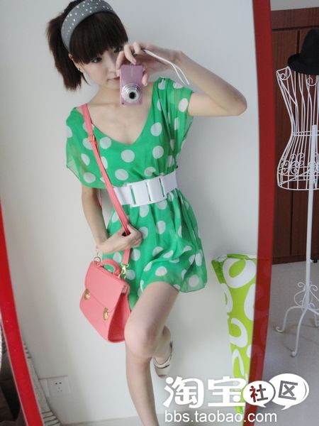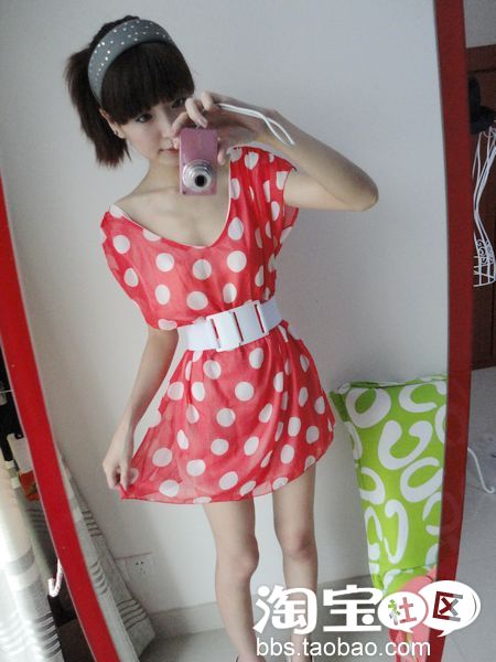 前后V领设计,性感 可爱 配上白色的腰带,让整条裙子闪起来了噢~
