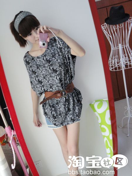 也可不配腰带,则是宽宽的大蝙蝠T噢!