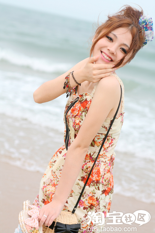 度假风一定少不了吊带,特别去换了这套大碎花的吊带小洋装,