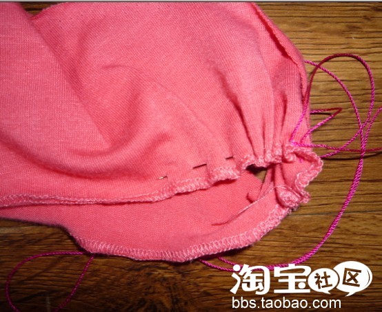 然后把拆下的袖子加了蕾丝做成花。。开始没放蕾丝。缝了几针后觉得太单调了。又剪了蕾丝放在里面这样缝了进去。