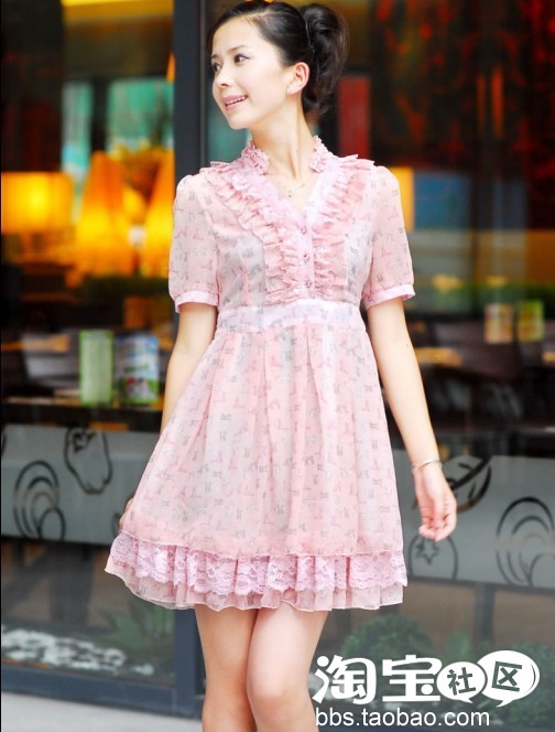 5、粉色雪纺裙+高跟鞋 打造优雅甜美公主
