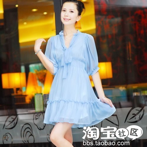 职场摸爬滚打过几年之后的你已是典型小熟女,你可能暂时遭遇职业瓶颈,高不成、低不就,因此容易焦躁抑郁。这时候更加要注意自己的形象,简约干练是法宝,尤其是像这样一款简约的蓝色雪纺裙加上一些小首饰更是让你平易近人。
