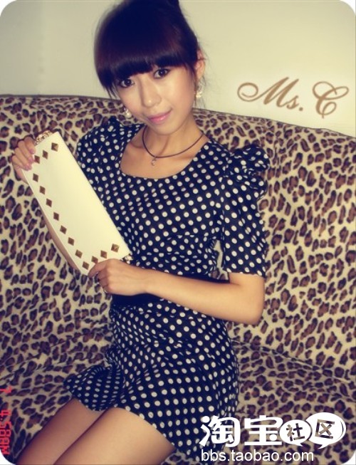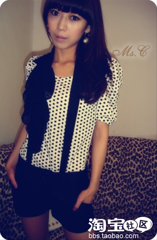 帅气的短裤,雪纺荷叶边的柔情,波点的结合,