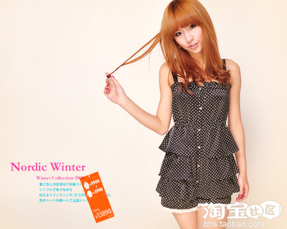 3、圆点雪纺连体裤+珍珠耳环+齐刘海,