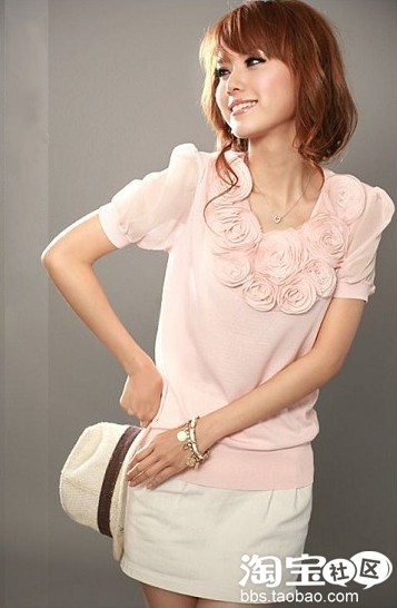 充满了唯美迷人的优雅姿态,极为细腻的雪纺玫瑰点缀其中,想要呈现出温柔的好女生印象让你的他疼爱你,这件上衣可以为你达成所有有关幸福的愿望喔