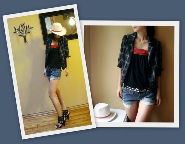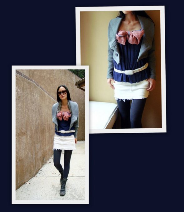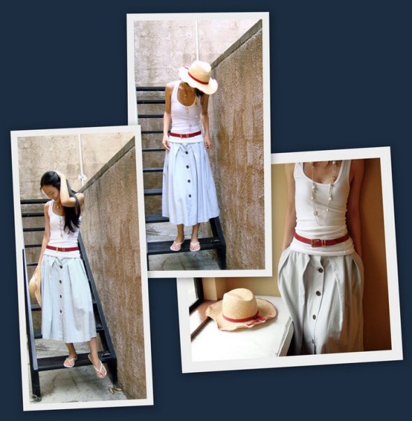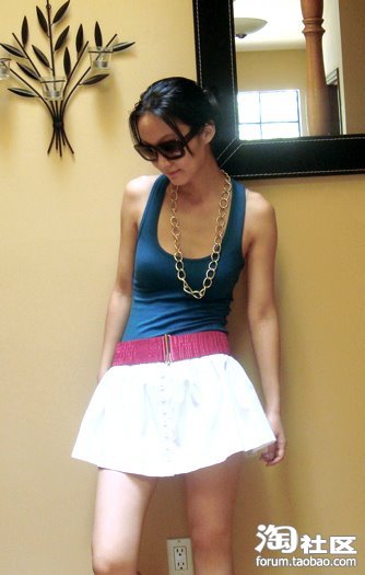 背心短裙,一般的穿法感觉没有多大花头,平凡的衣服平凡的颜色,其实,小小手法,麻雀变不了凤凰,也至少变只黄鹂鸟,哈哈~~