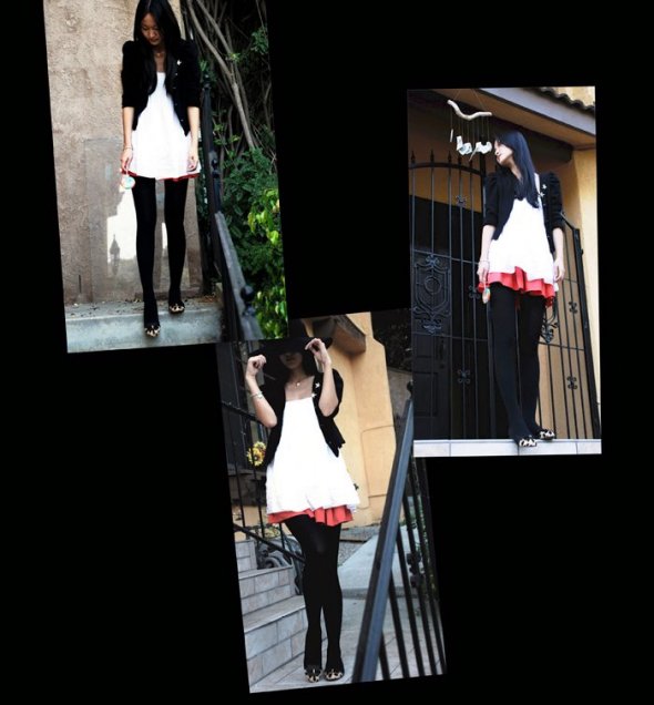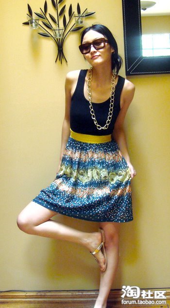 我穿长裙不太合适,还是拉上来做连身短裙比较是我,哈哈~~
