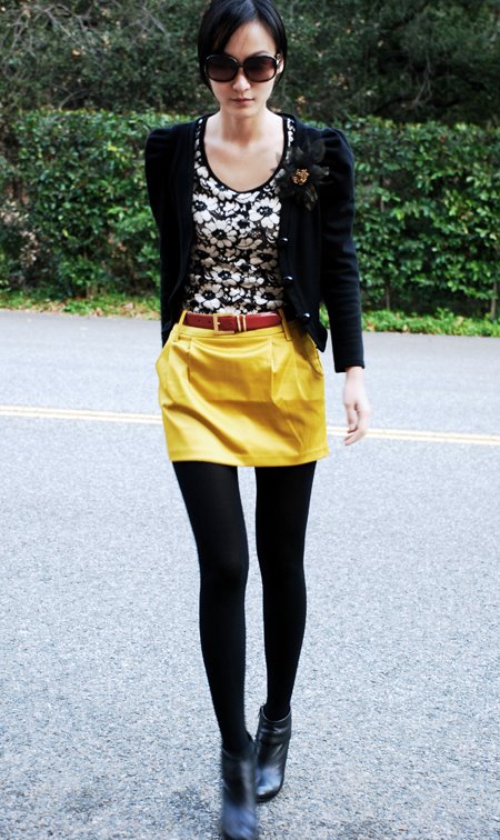 这里的小心思是:红色的腰带,胸口金色花蕊的胸花——金色呼应黄色裙子,花朵陪衬打底花朵衣服的风格~~