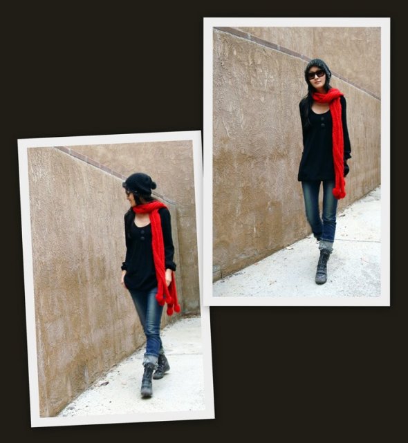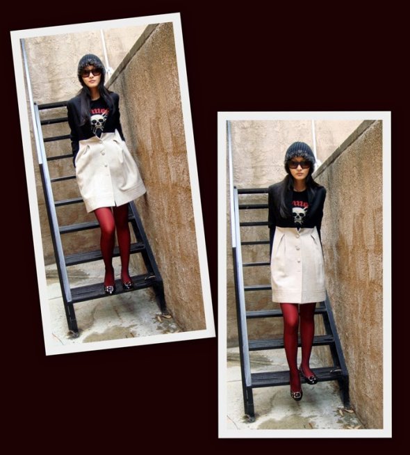 加上外套和袜子,只要比例得当,就不会红的俗气~~~