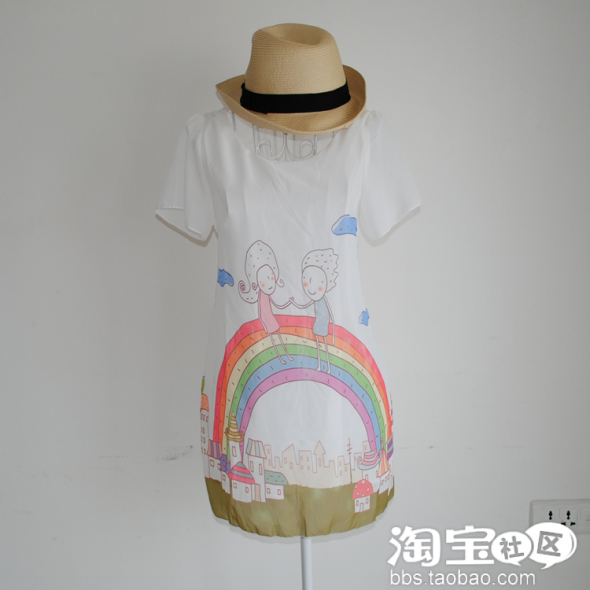 NO.1轻柔白色雪纺衫+卡通印花设计的花色=你的专属可爱