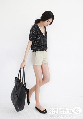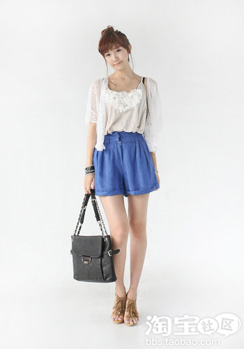 时尚点评:保守MM们不要紧张,这条短裤是有内衬的,蓬松的裤腿不会帖服在腿上,舒适透气。大大的蝴蝶结一下子打破了以往OL装的沉闷单调,提升甜美度。