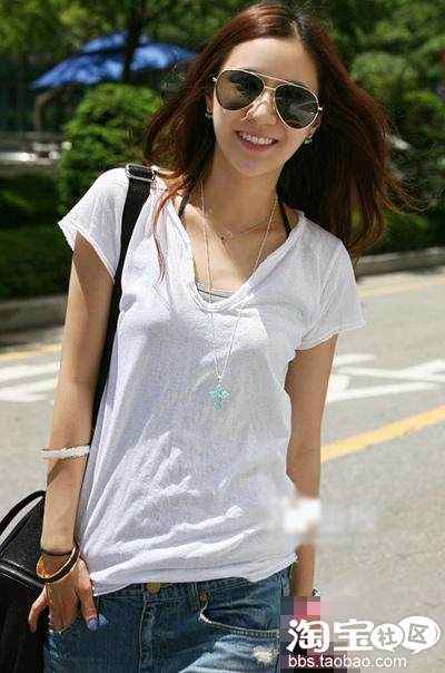 白色V领T恤 ,十分休闲舒适的一款YY。
