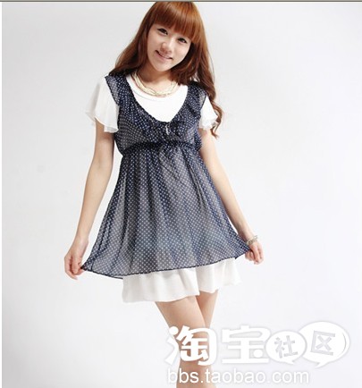 波尔卡小圆点水玉飞袖 两件套连衣裙
